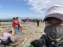 バイク乗りによる地球愛護活動『ラブ・ジ・アース』のスローガンに賛同して海岸清掃活動に参加しております。